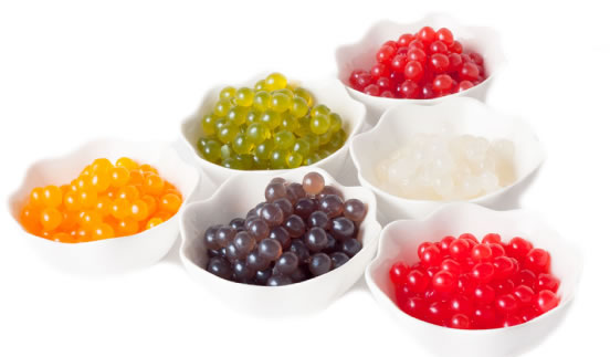 Джус-боллы – это шарики в желатиновой оболочке, содержащие различные соки фруктов и ягод: винограда, зеленого яблока, киви, клубники, личи, манго, маракуйи, малины, персика, черники. Благодаря привлекательному виду и приятному вкусу, нашли применение как добавки в напитки на основе различных чаёв и газированной воды (бабл-ти).
