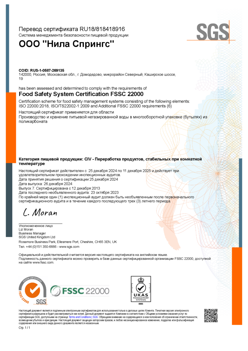 "Neela Springs", производимая заводом Nestle в Москве. Эта вода проходит через
